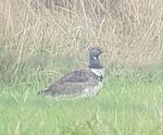 Male Little Bustard showing well, albeit fairly distantly, in field north of the village of Mickletown, which itself is around one and a half miles north west of Castleford. After a ten minute wait, the bird emerged from the margins and walked in the field in full view. A couple of Bridge Camera record shots.