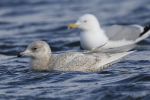 Visited yesterday morning to hopefully see the two main attractions. A juvenile Iceland Gull and a 1st Winter Caspian Gull. The tarn is situated a mile at the most west of Keighley high up on the tops. Not very big and a bit of a spot for the locals to walk their dogs. Other locals seem to come and throw bread for the birds. This had been done as we arrived and parked up right at the side of the tarn. Consequently, all the gulls were still on the tarn, rather than on the adjacent fields. Saw the Caspian Gull straight away, close in and in typical pose but couldn't connect with the Iceland Gull. We tried the fields nearby as most of the gulls had by now moved there. It was blowing an absolute hooley, was bitterly cold and showers of sleet and hail were coming at us horizontally. We moved back to the main parking area by the tarn as more locals were again on a feeding mission. Now saw the Iceland Gull with great close in and flight views.