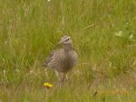3 Dotterel. M & F and what (looking at Collins) is a still winter plumaged bird ?? Possible non-breeder ??. In the field at R/side of road heading from Hebden Bridge ...... middle of field, there is an area of rough dry grass with a black bag in it .... the birds hunker down in that out of the wind.