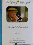 I suspect that I was the only person from Leigh, his home town, among the thirty or forty who had gathered to bid farewell in a service which included screens showing pictures of Tom with friends and family during a long and fruitful lifetime. The occasion, from beginning to end, was highly dignified, with spoken contributions by his son and two grandchildren and a fine selection of music and poems. The informal procession into the chapel was to the accompaniment of a fine rendition by Amanda Roocroft of Puccini's aria "O mia bambino caro"; the centrepiece was Edward Elgar's masterpiece 'Nimrod' played by the Halle Orchestra; and Tom's last farewell was to the strains of "Abide with Me."