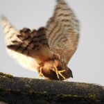 3.15pm. A small, slender looking adult male Peregrine was hunting low on Woolfold fields adjacent to Scobell street. It came in from the direction of Bury town centre, sent a huge flock of gulls, starlings and pigeons high up into the gale force winds. Made a few failed swoops and then left empty handed flying slowly past me in the direction of Ramsbottom. evileye