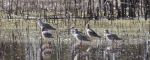 15 Common Greenshanks (all together in shallow water seemingly sleeping)