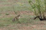 Paul suddenly exclaimed that in the far distance he thought he had noticed two large ducks most likely Knob-billed Ducks! The farm workers now often appear to be increasingly using drones for either sowing or fertilising fields and suddenly a sizeable flock of large ducks had likely been flushed by the drone.In the air these didnt fit either Whistling Ducks or Spot-billed - they were indeed Knob-billed and as Paul rattled off photos I kept track of the the flying birds and counted 19 birds.