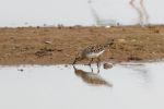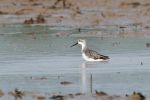 We stayed put hoping that our bird would do the same, - though it and its companions flew 100 metres onto a small islet where the Pec. Sand enjoyed some shade sheltering under the bellies of the two Greenshanks, and sometimes cooling thigh deep in the water. It was disturbed several times by an aggressive Black-winged Stilt which thankfully cleared off after a couple of tense minutes.