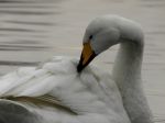 Stayed local again today I shop in Middlewich, 5mins from home so decided on a walk along the canal by the A533 just south of the town. There I managed to connect with an adult Whooper Swan that is with the Mute Swans this winter. It is almost certainly the same one that was first found with Mutes in the exact same location a couple of years ago. With the canal iced up the swans were in a small patch of open water making for easy photography. A digiscoped image attached.