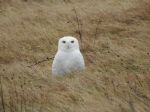 Later that day, on visiting the islands only Community Shop and chatting to Ivor, an Orcadian who has lived here all his life, he told me the Owl had been around but not seen for a good while.. In his opinion it had not even left.. He has seen it many times since it was first recorded and reckoned if I took a walk out to Red Head at the Northern tip I could find it. I took a short walk from the shop about 400metres north and had a look along the ditch and heather clad fields to the east where it had made its home but no trace. There cannot be many places in the world you could drive to and see a Snowy Owl from your car window on your way to work.! Maura in the shop was extremely helpful telling me all about the bird and where it was usually seen.