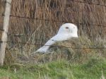 As I freewheeled down the road from the Hill of Bomo to the Owls regular haunt, I saw it.. There it was. A superb, pure white massive lump of feathers hunkered down in a ditch about 100 metres from the road. It was just one of those moments I'm sure we have all had in our lives. They dont mean much to other people but it does to you. My first ever Snowy Owl..I had wanted to see one for nearly 50 years. I set the mini Nikon scope up and snapped a couple of rubbish Samsung photo's off but it was all about the view of such a magnificent bird and not the photograph for me.. It was stunningly beautiful. Yellow eyes occasionally squinting and blinking in the sunlight and looking quite settled. After a short while ,( and ringing Craig Bell to tell him I'd found it), the bird climbed out of the ditch and flew across towards a fence post. Its size in flight reminded me of a Glaucous Gull or a Little Egret.. It was huge . It again sat in the sunlight barely moving and I sat by the roadside for hours watching it. I saw it again later in the day in the same area and sat in awe of such a beautiful bird.