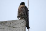Peregrine again perched on the Salford Western Gateway tower beside the M60 Barton Bridge, this time on the Trafford side of the Manchester Ship Canal. Noticed while driving over the bridge at 11.00, I exited and drove round to see it fly off towards Barton Moss. Rubbish flight shot may help the RSG identify the individual.