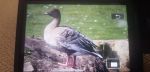 The Pink-footed Goose present at 2:10pm on the west side of the Rochdale Canal viewable from the towpath c300 yards north of the Hopwood Arms, Slattocks