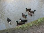 The Ashton Canal (on the section between city centre & Audenshaw bridge) has a small number of what to my uneducated and inexperienced eye look like mallards but all in black - i.e. basic shape of head etc is mallard-like but all colouration is black-grey. I can't find anything that matches in my Collins Bird Guide: any suggestions please?