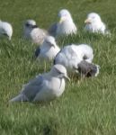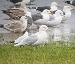 Iceland Gull amongst approx. 300 other gulls on Bee Fold floods - took me a good 20 mins to find as they were closely packed together & hunkering down in the bitter wind & sleet.