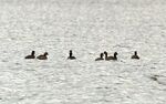 8 Black-necked Grebes in their tight feeding group in East Bay