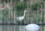 Great White Egret at the western end early but flew off low west. This red-ringed bird, which has now been resident in the west of the county for at least 10 months, was in full resplendent breeding plumage, complete with very long aigrettes on its back and surprisingly pinkish-red legs, the first time I can recall witnessing this plumage in the county.